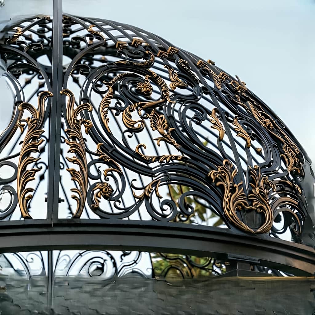 دارای ساختار فولادی و نقوش فرفورژه تزئینی با مقاومت بالا در برابر باد و رطوبت, مناسب برای باغ و ویلا. |