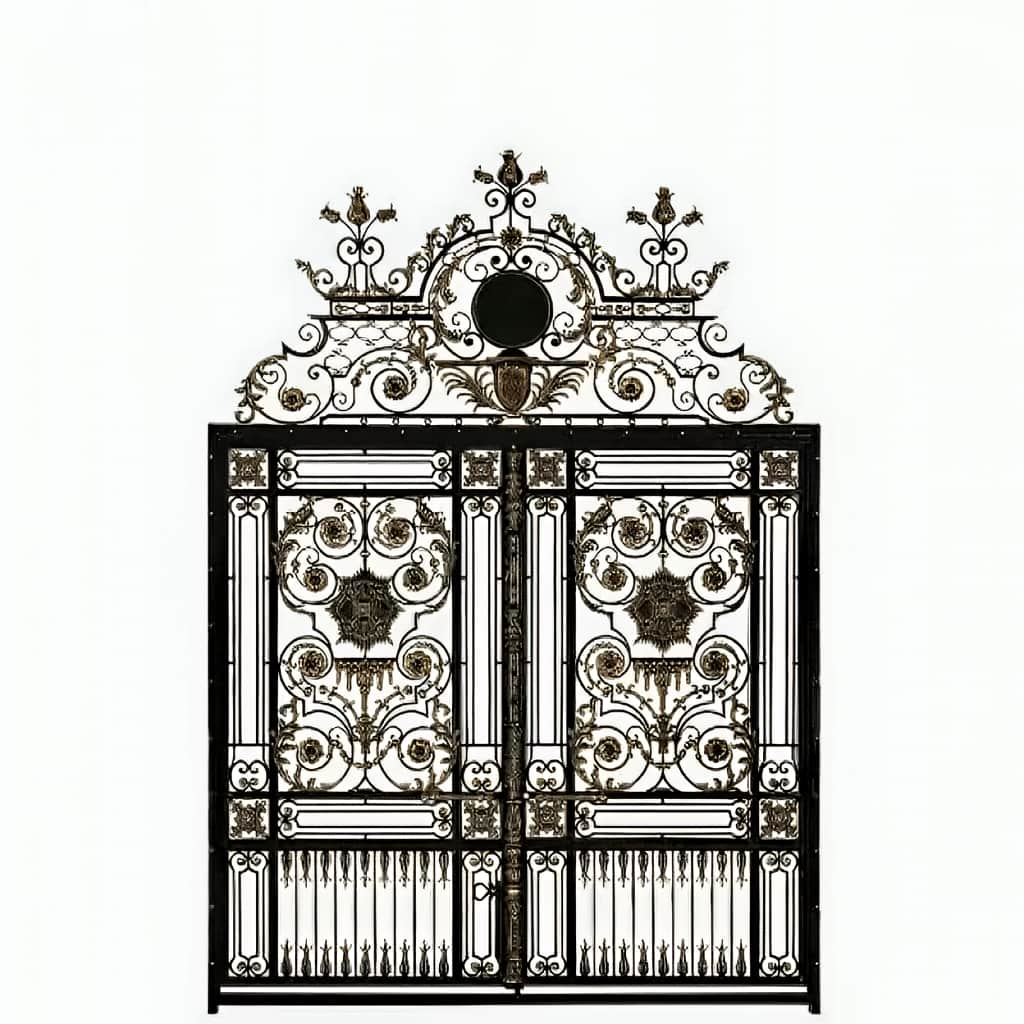 ساخته شده از فولاد و چدن با نقوش گلدار برجسته که جلوه ای اشرافی و امنیت بالا برای ورودی ایجاد می کند. |
