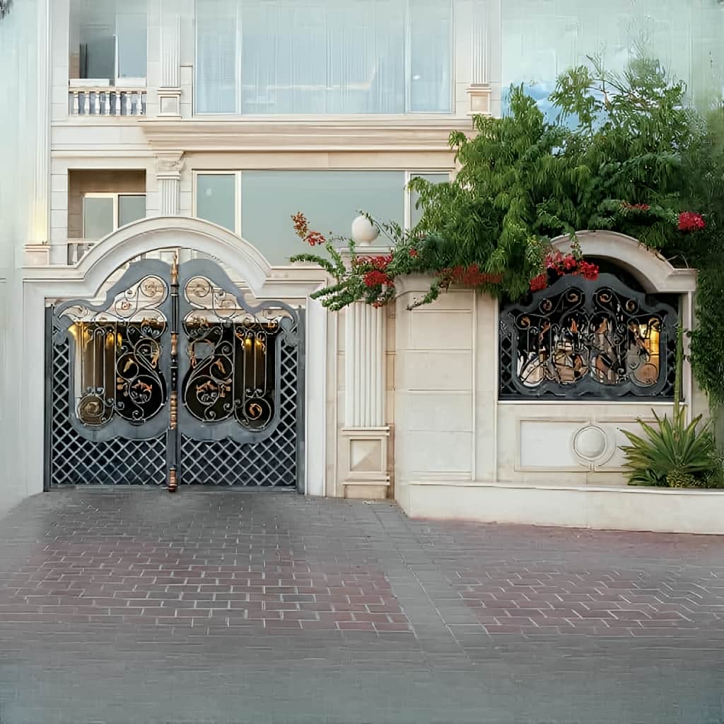 آیا این درب قابل سفارشی سازی است؟ بله, ابعاد, رنگ, طرح فرفورژه و یراق آلات درب ارغوان به طور کامل قابل سفارشی سازی است.