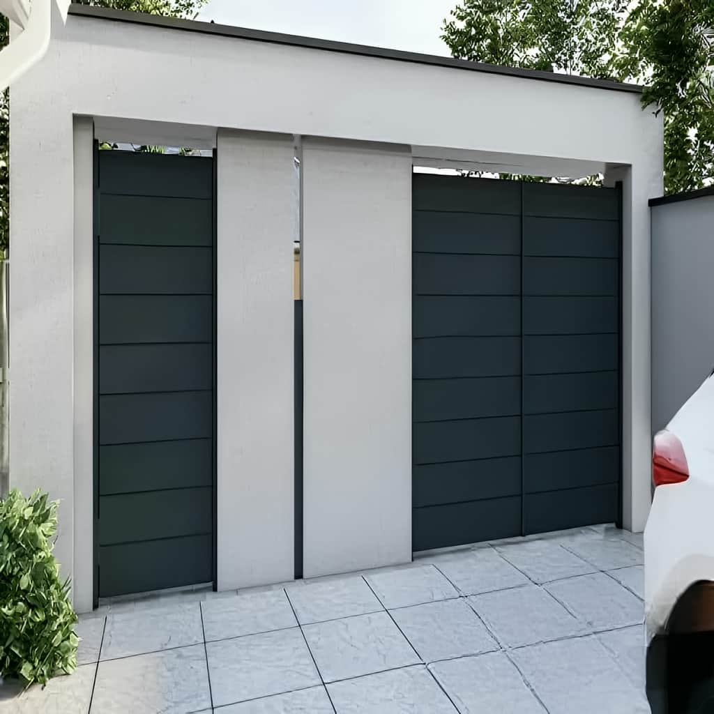 درب دو لنگه کیت کت افقی مدل دو لنگه درب کیت کت افقی با عرض های 300, 330 و 350 سانتی متر و ارتفاع 240 سانتی متر برای ورودی های بزرگتر مناسب است. این درب می تواند با نصب لولایی یا ریلی عملکرد روانی داشته باشد.