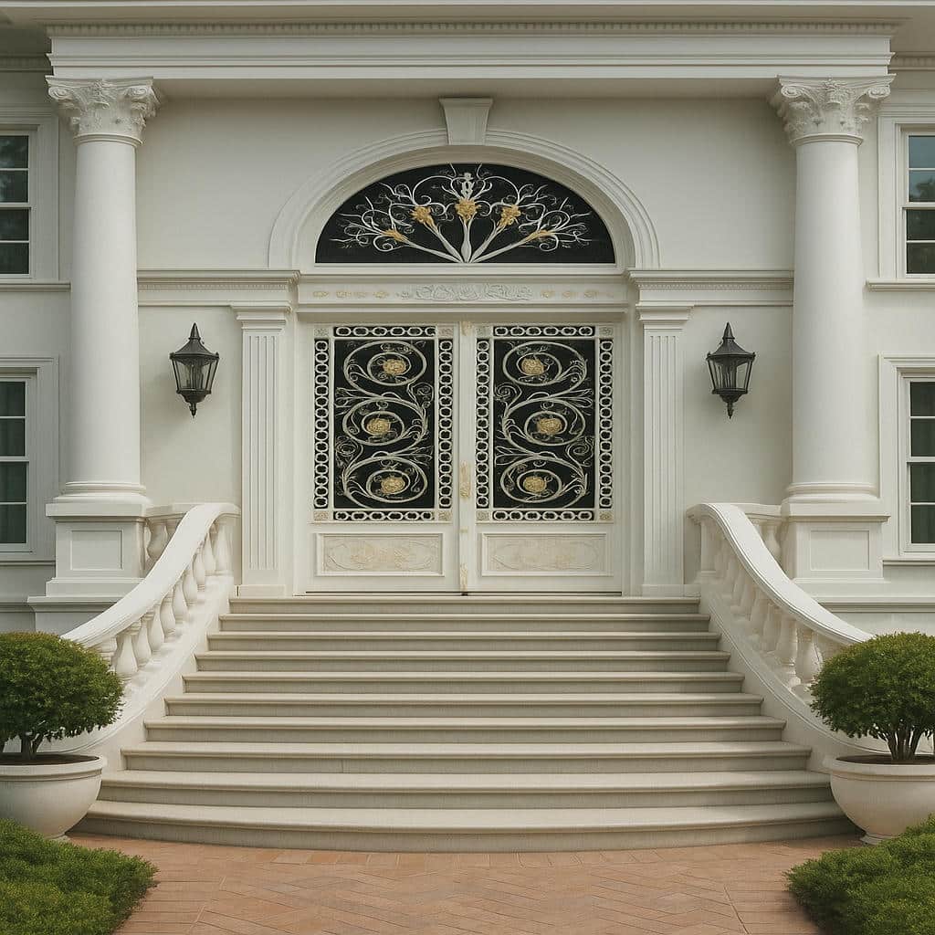 درب ورودی لابی مدل برلیان با طراحی هلالی و تزئینات پیچک و گل های برجسته ای که در دو طرف قرینه شده اند, نمایی باشکوه و چشم نواز به ورودی ویلا, لابی یا پارکینگ می دهد. این درب در نسخه دو لنگه ماشین رو با ابعاد استاندارد عرض 300–350 سانتی متر, ارتفاع بدنه 240–260 سانتی متر و ارتفاع تاج 270–290 سانتی متر تولید می شود, در حالی که نمونه نفررو تک لنگه دارای عرض 100–120 سانتی متر, ارتفاع بدنه 230–250 سانتی متر و ارتفاع تاج 260–275 سانتی متر است. سازه این درب از پروفیل های صنعتی با اتصالات جوش CO₂ و قطعات فرفورژه با جزئیات دقیق ساخته شده است. این درب با پوشش رنگ پودری کوره ای الکترواستاتیک و زیرسازی ضدزنگ, مقاومت بالایی در برابر رطوبت, اشعه خورشید و فرسایش دارد. علاوه بر این, امکان سفارشی سازی کامل ابعاد, رنگ, نوع بازشو و درج لوگو یا طرح مخصوص وجود دارد که این ویژگی ها درب برلیان را به انتخابی لوکس, مستحکم و شخصی سازی شده برای پروژه های فاخر تبدیل می کند.